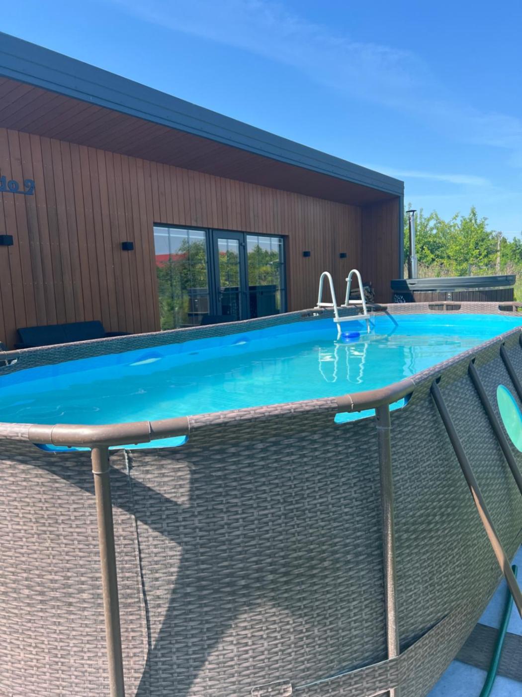 In addition to a seasonal outdoor pool, the holiday home also offers outdoor play equipment.