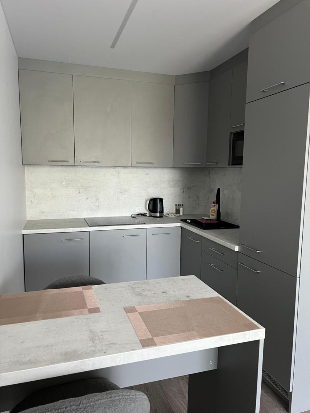 Studio Apartment with One Double Bed. Boasting a private entrance, this apartment comes with 1 living room, 1 separate bedroom and 1 bathroom with a walk-in shower and a hairdryer. In the well-equipped kitchen, guests will find a stovetop, a refrigerator, kitchenware and a microwave. The apartment has parquet floors, a seating area with a flat-screen TV, a washing machine, soundproof walls as well as city views. The unit has 2 beds.
